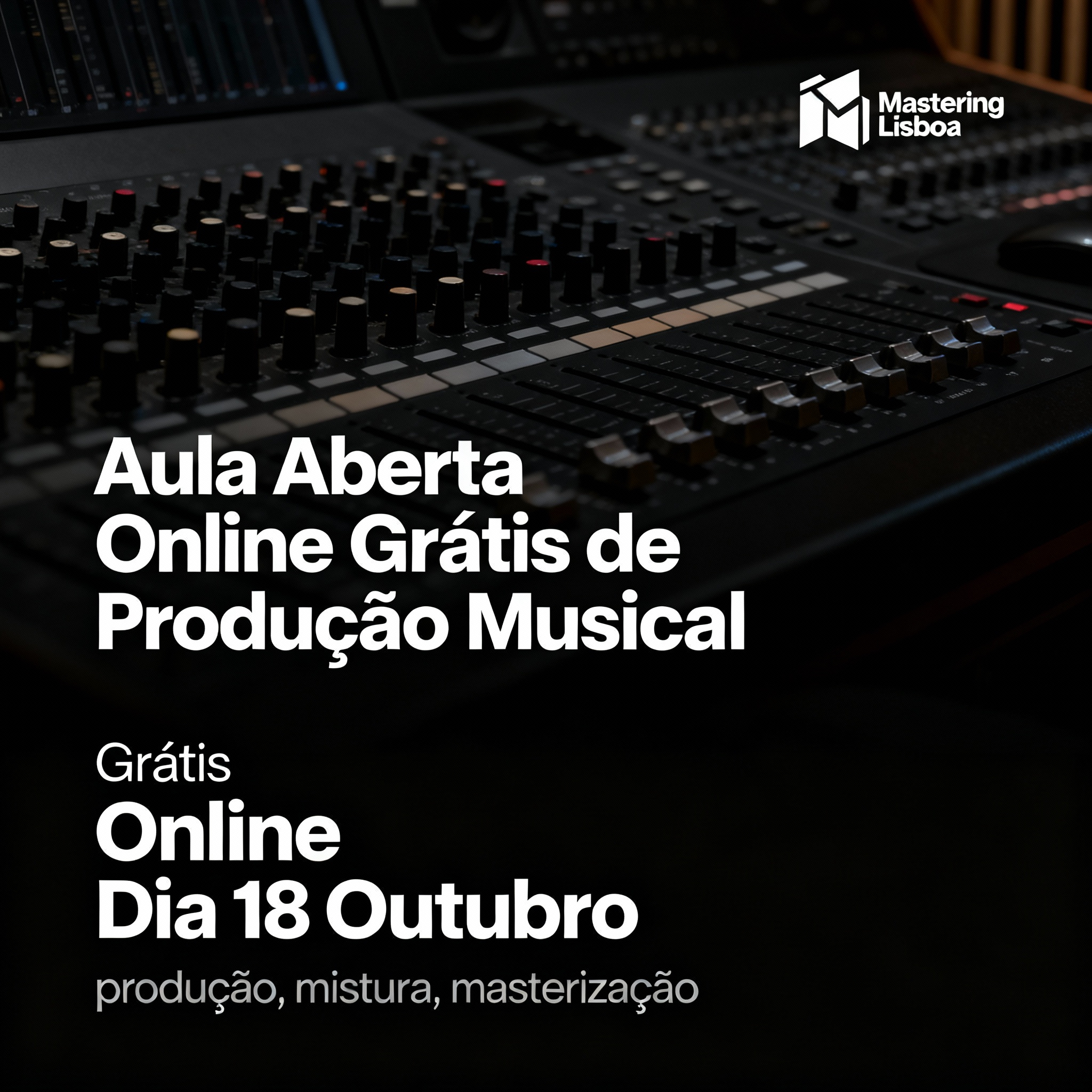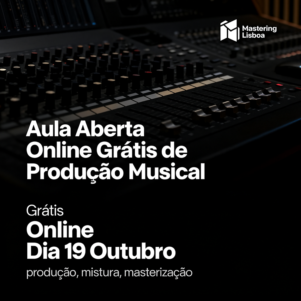 No dia 18 de Outubro vamos realizar uma aula grátis de produção musical. Podes tirar as tuas dúvidas em tempo real, usando o ZOOM. Inscreve-te já!